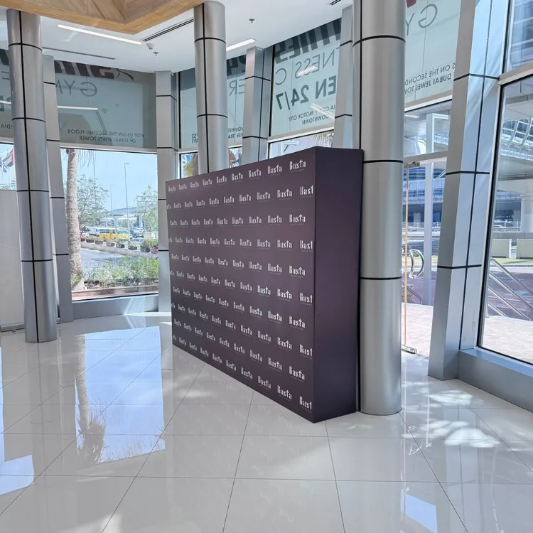 Choose Zahrat Al Madina Printing for your wooden backdrop stands, and ensure your branding is strong and visible at every event.