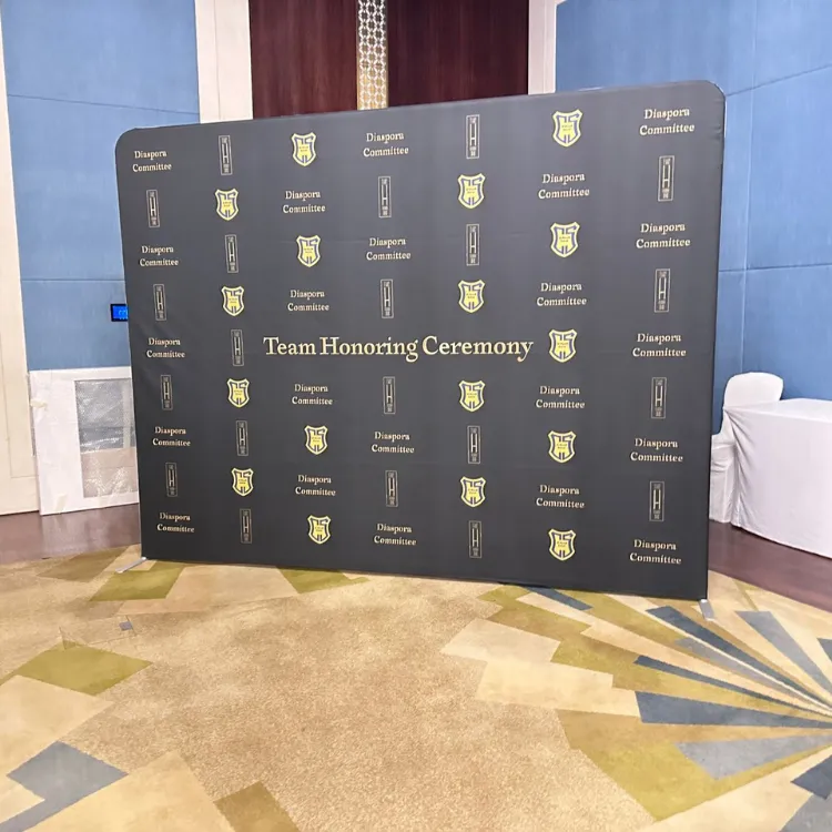 For events that require a stronger presence, the 300 × 300 cm straight fabric backdrop creates a wider visual surface suitable for exhibitions, press coverage, and group photography. Custom sizes can also be produced to fit specific indoor venue layouts, allowing the backdrop to integrate naturally into different spaces. Each straight fabric backdrop uses a metal tube frame that supports proper fabric tension, keeping the display smooth and visually consistent throughout the event.