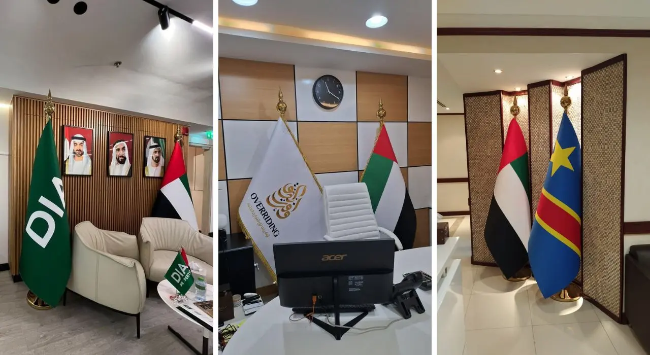 Zahrat Al Madina Printing offers crown pole conference flags UAE that combine a clean flag presentation with a polished pole design. These flags are often chosen for conference halls, boardrooms, and official venues where subtle elegance supports the overall atmosphere of the event.