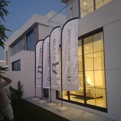 For visitors, curved top flags act as clear visual markers that guide attention and improve navigation. For businesses, they offer a modern branding solution that keeps logos, colours, and promotional messages visible across Dubai, Sharjah, and Abu Dhabi. The curved design allows the fabric to stay readable even when wind direction changes, helping branding remain visible throughout the day.