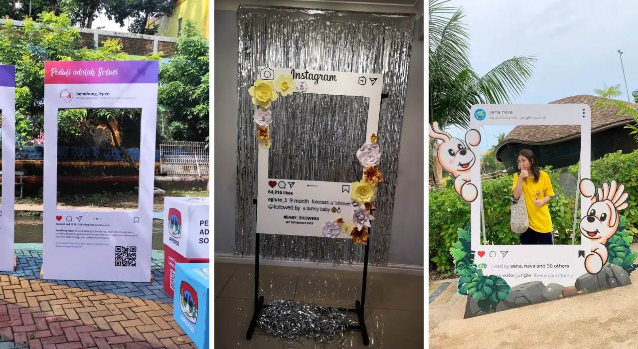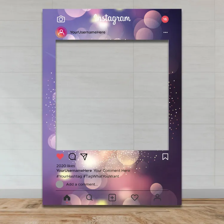 Instagram frame style Forex selfie stands are designed as open frames that allow guests to stand behind or within the frame for photos. These frames are commonly produced using Forex or foam board and are finished with high-quality digitally printed stickers for clear visuals.