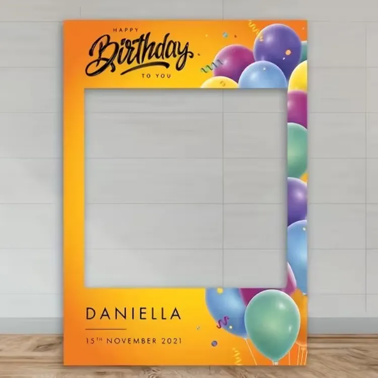 Standard sizes such as A0, which comfortably fits up to three people, and A1, suitable for two people, are commonly used at events and mall promotions. The frames are lightweight and easy to move, making them ideal for exhibitions, brand activations, and social media campaigns. Colours, branding elements, and overall size can be customised based on event requirements.