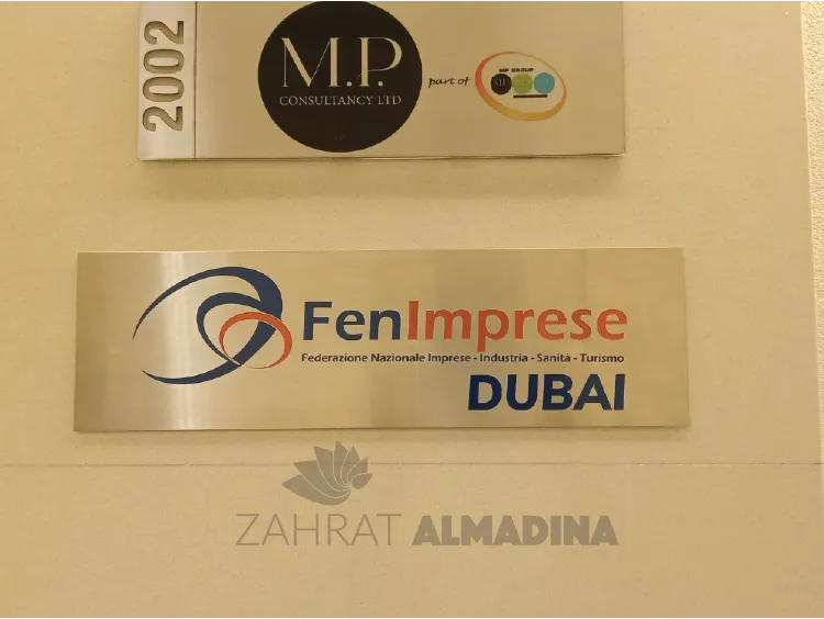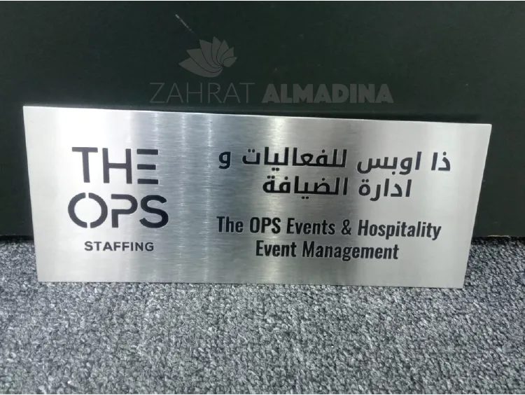 Zahrat Al Madina Printing is one of the top metal name plate manufacturers in Dubai, supplying customised name plates for offices, doors, and interiors.