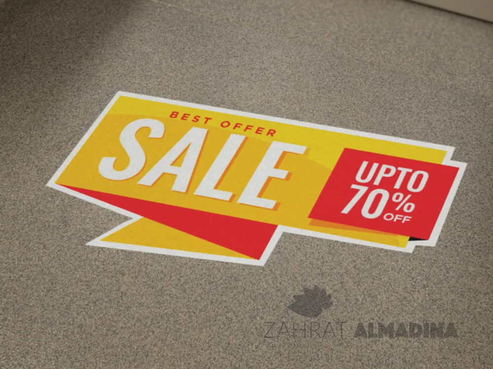 Floor sticker printing Dubai allows businesses to display branding, promotions, and directional messages directly on floor surfaces. Zahrat Al Madina Printing provides custom floor graphics Dubai designed for retail stores, malls, offices, and exhibitions where visible floor advertising is required.