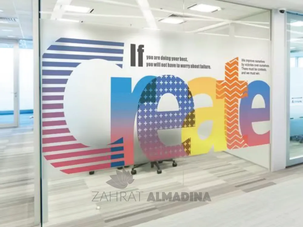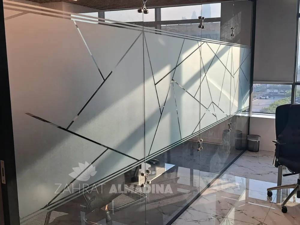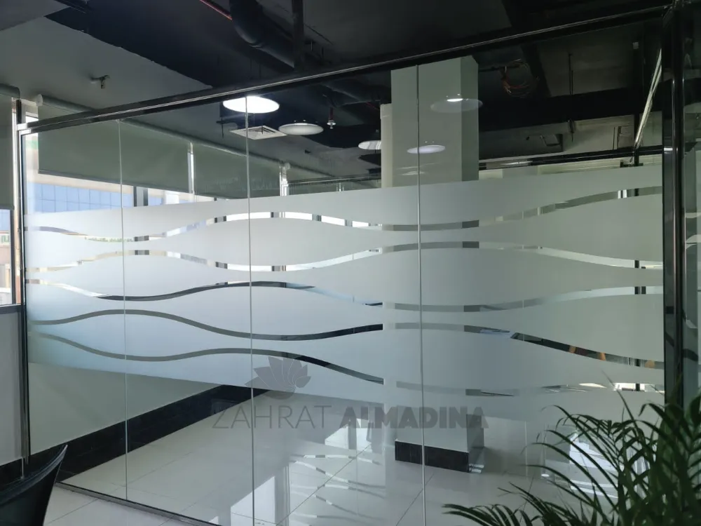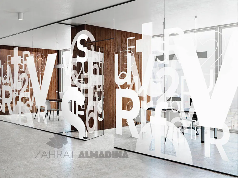 At Zahrat Al Madina Printing, we offer a wide range of custom Frosted Glass Stickers including installation for our customers in Dubai and Sharjah, UAE.