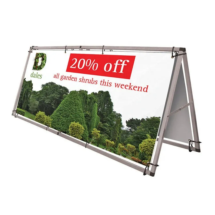 The frame allows printed graphics to be changed without replacing the structure, making it suitable for evolving promotional campaigns and events.