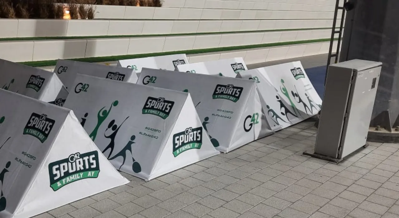 For outdoor promotion in Dubai, toblerone stands are placed near sidewalks, event access points, sports venues, and outdoor activity areas where temporary branding is required. The freestanding structure allows easy repositioning without permanent fixing. Toblerone stands are also easy to store and reuse, as many designs can be dismantled or folded for compact storage between campaigns. This allows the same stand to be reused across multiple events while maintaining visibility and safe pedestrian access.